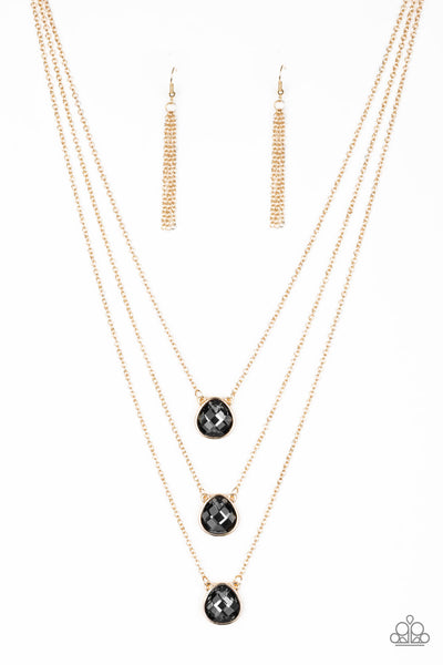 Featuring sleek gold frames, imperfect teardrop gems layer down the chest in a refined fashion. Features an adjustable clasp closure.