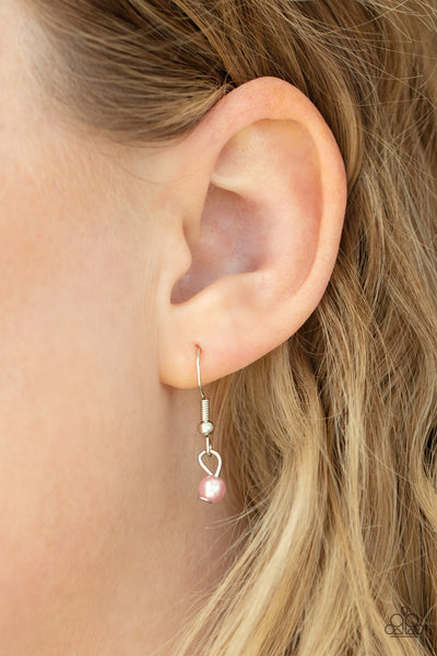 A whimsical charm collection including, a pink pearl, glittery rhinestone heart, a dainty silver disc stamped in the word, "Mom," and a silver pendant stamped in the motivational phrase, "Do all things with love," delicately glide along a dainty silver chain below the collar for an endearing fashion. Features an adjustable clasp closure.